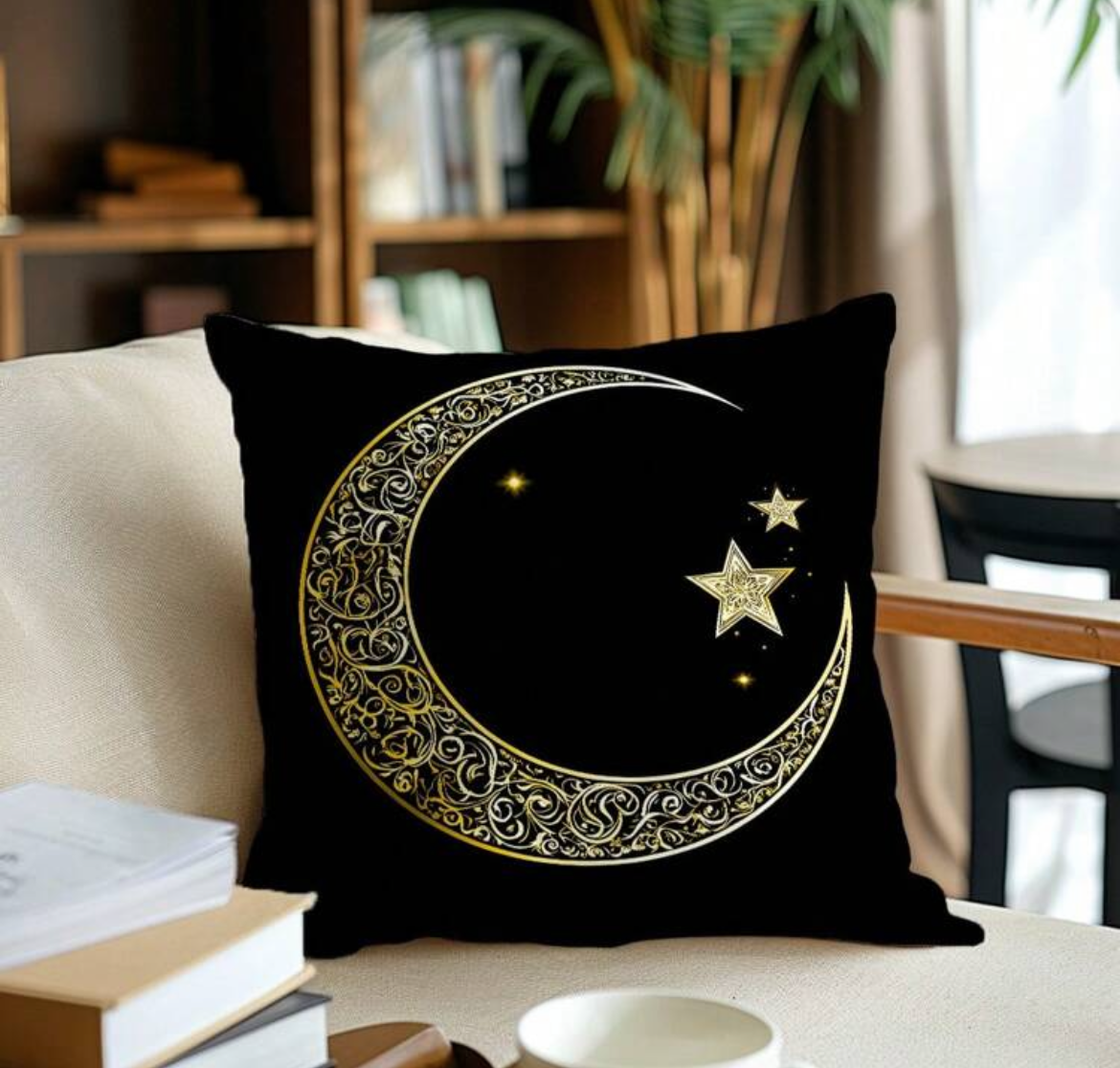 Kussensloop met binnenkussen – Gouden Maan & Sterren